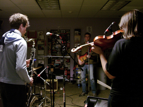 Gordon Taylor are four protein-derived life-forms that play songs about science, history and medical oddities. Having only been around a short period of time, they’ve already formed quite a name for themselves with the few blow-out performances they’ve allowed us to witness. An upstanding bunch of young striplings, they wax melodic and rock geodesic. Formed out of the smoldering chunks of Rise Over Run (formerly Lina Alba) and assisted by Johnny-Cat on drums, Gordon Taylor are on their way to taking Portland by storm that will leave you soaked and satisfied as you trudge through our streets. If they were a body part, it’d be the pancreas. A chord? F-sharp. A Max Stop? Ruby Junction… Playing on KPSU? Right now…