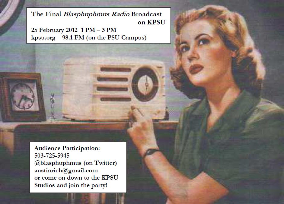 There were several factors that led to the end, but one was a simple matter of technical problems. KPSU, at the time, regularly had issues, with equipment, access to the studio, the turntables (as most notably heard on the Closet Radio sessions, which had a hum that was only identified afterward running throughout the performance), and sometimes, there was a band sitting in the studio, wanting to play. This is, of course, the adventure of college radio, but when you rely on the full studio to create your program, these limitations can be very frustrating. On at least two occasions, the station was mysteriously closed and we couldn’t do a show. (We ultimately podcasted in place of those, an entirely other permutation of this show that is also not represented here and now.) And in the end, the station just didn’t know what to make of the show. Trying to explain a collage / interview / talk / music show was hard, and they never understood why it didn’t work to have a rock band recording in the room next door while Rikki & I were trying to talk. (Not to mention how hard it was to mix.) It was clear, for both of us, that KPSU was not the place for this show.