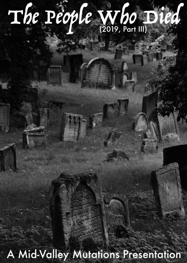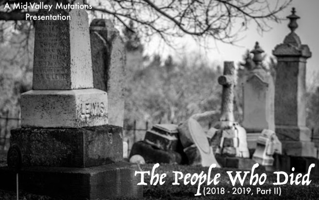 Until Captain Beefheart died about a year ago, and I was completely overcome with the idea of doing a tribute… and not just to him, but to everyone who had recently passed that I had missed for one reason or another. And thus, The People Who Died was born. I knew instantly that I wanted to make this a regular feature on the show, which of course meant that when it came time to do part two, that it would have to be delayed for several weeks. Nonetheless, it is ready for you, now.